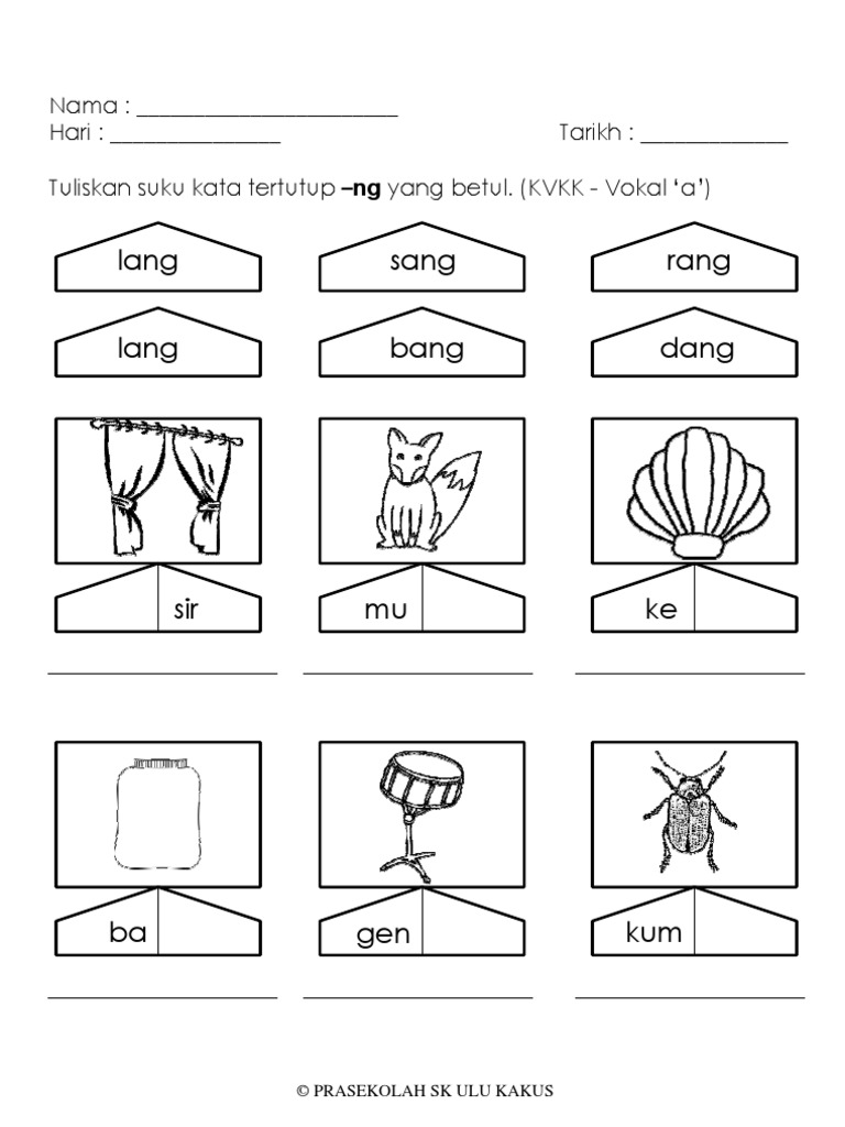 Menulis Perkataan Yang Mengandungi Suku Kata Tertutup Ng 1 from imgv2-2-f.scribdassets.com Latihan suku kata kvkvisi tempat kosongla. 13 downloads 359 views 2mb size. Apa yang ada di dalam permainan ini? Latihan suku kata kvkv by bearbear511 44071 views. You can do the exercises online or download the worksheet as pdf. Instrumen literasi menulis ujian pasca tahun 3.konstruk 2: Bahan pembelajaran prasekolah latihan suku kata mp3 & mp4. Asalamualaikum.sy copy ye latihan diatas.minta dihalakan.terima kasih pada yg sudi berkongi ilmu.